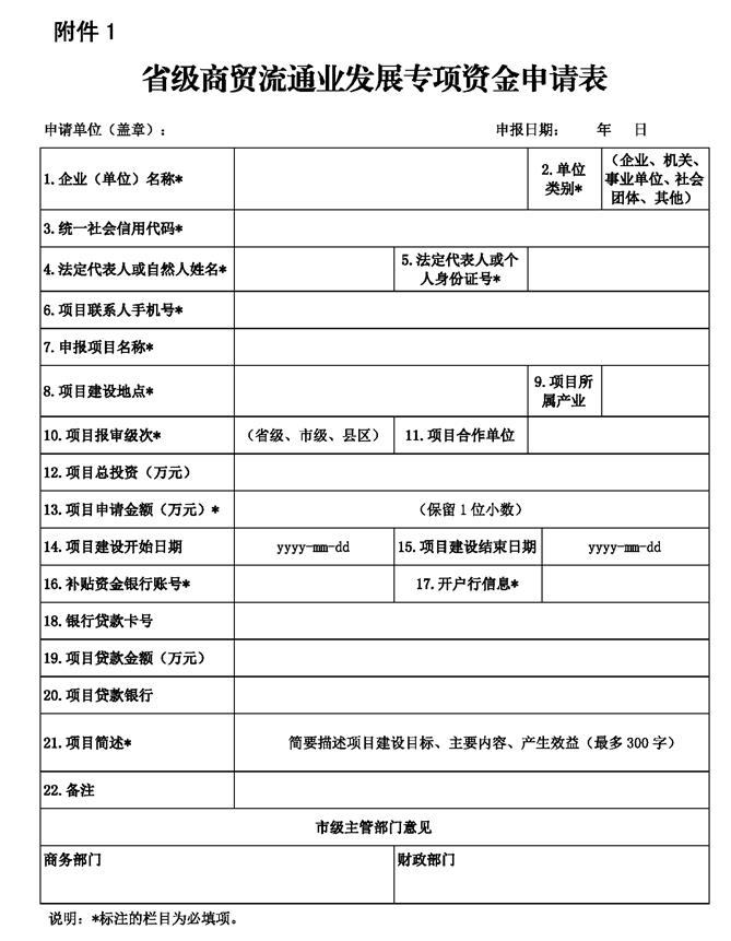 3.申報材料∶(1)省級商貿流通業發展專項資金申請表;(2)申報單位申請報告(包括企業簡要情況、主要建設內容、項目社會及經濟效益等)及政策項目申報誠實信用承諾書(法人簽名并加蓋單位公章);(3)項目主要投資(費用)明細(包括與項目建設及費用有關的合同、支付憑證、發票或收據復印件等);(4)新設直營連鎖門店項目提供門店營業執照、房屋租賃合同或自有產權證明復印件,老字號展銷會項目提供展會主辦方有關活動文件和展位合同復印件、省老字號企業協會出具的參展證明材料;(5)加載統一社會信用代碼的營業執照復印件;(6)項目建設、活動有關的實景照片。